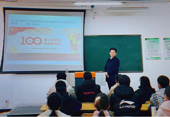 为深入学习贯彻习近平新时代中国特色社会主义思想,落实我校处级以上领导干部联系学生班级工作制度,2021年12月14日下午,长治医学院副院长宋晓亮在五龙校区日新楼504教室为联系班级药学2101班作专题讲座。讲座主题为习近平总书记在庆祝中国共产党成立100周年大会上发表的重要讲话以及十九届六中全会精神概要。